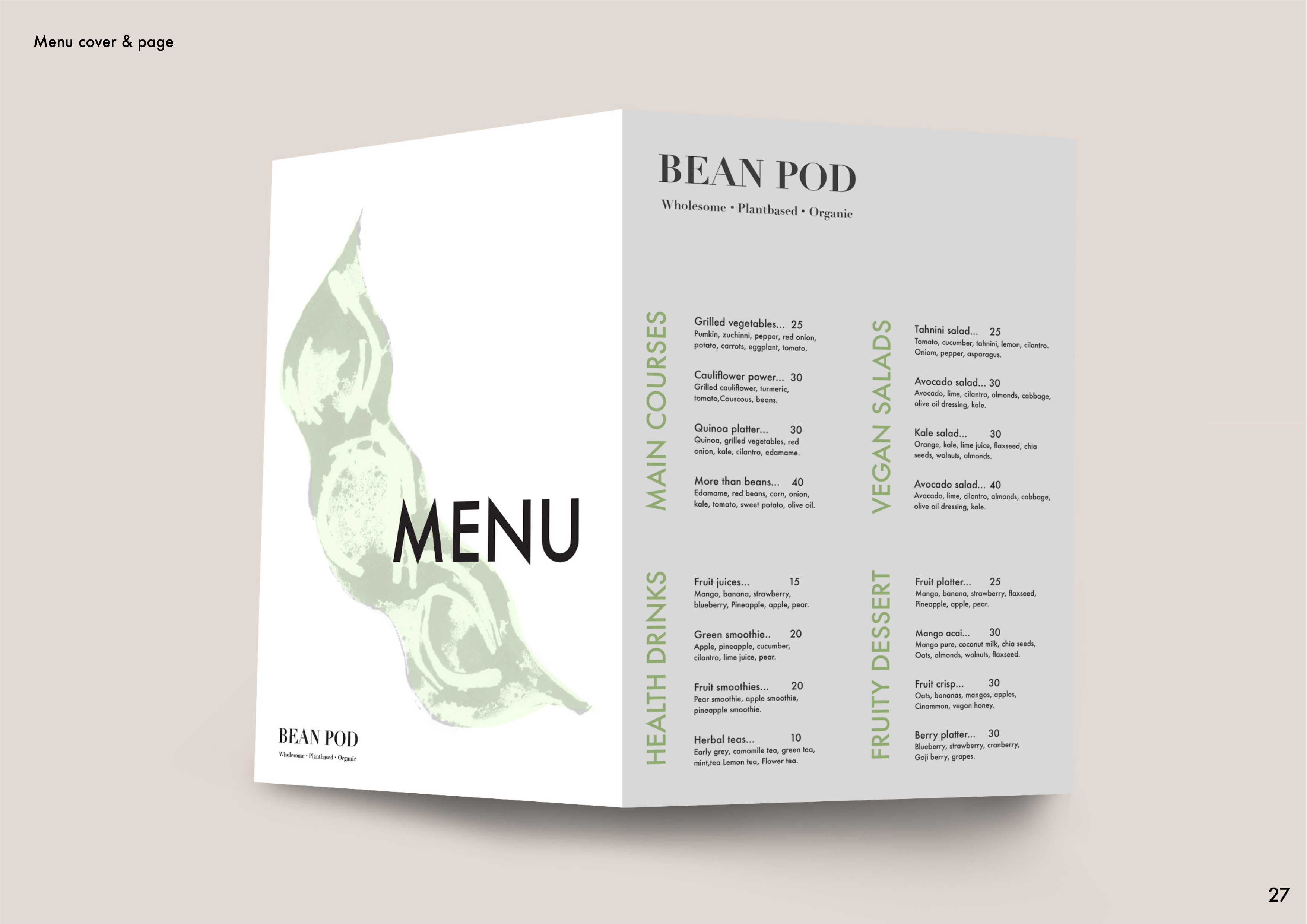 The graphic standards manual is used to keep consistency within the design. The identity of the brand must be kept the same and not recreated or out of consistency. The guidelines will help Bean pods identity to be reproduced with precision and consistency. Please read all of the guidelines before starting any design for this brand.